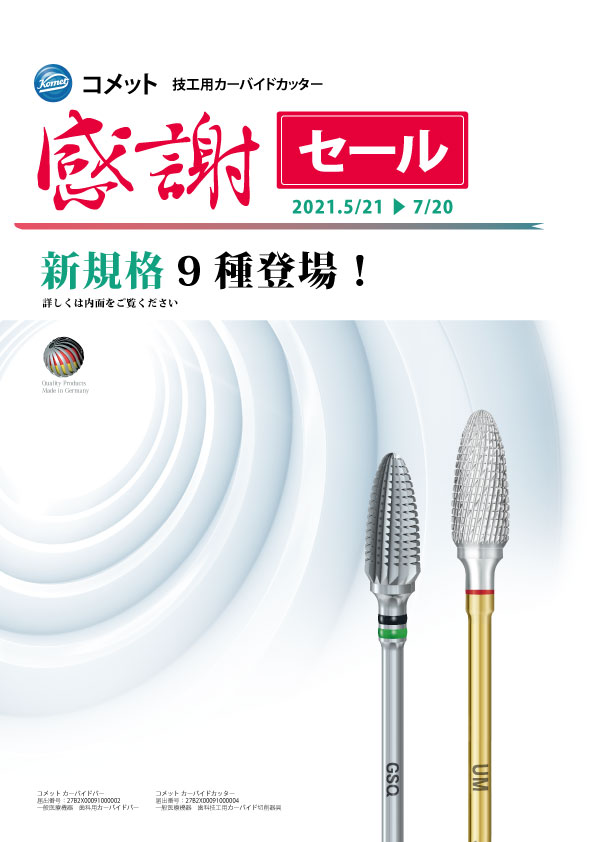 コメット技工用カーバイドカッターサンクスセール2021(5/21~7/20迄)のご案内をアップいたしました。